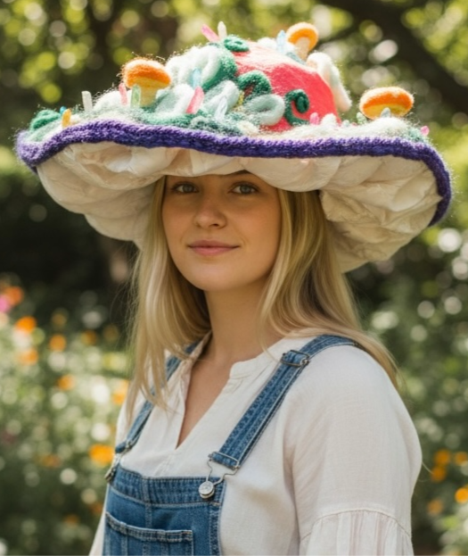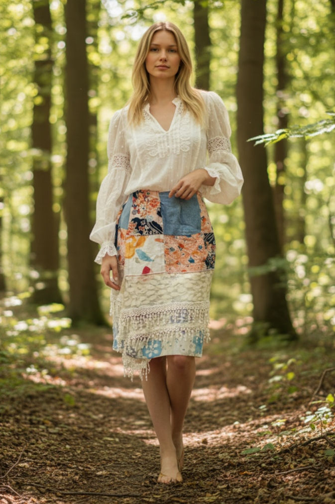 Linen & Lace showcases pieced-work garment construction and playful wearable sculpture inspired by upscaled cottage-core aesthetics, blending vintage charm with modern elements.